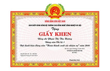 - Chất Lượng Cao: Chúng tôi sử dụng các loại vật liệu cao cấp để đảm bảo chất lượng bằng khen. Chúng tôi hiểu rằng mỗi tấm bằng khen đều mang ý nghĩa quan trọng, và vì thế, chúng tôi luôn nỗ lực để mang đến những sản phẩm in ấn xứng tầm với thương hiệu/ tổ chức của bạn.